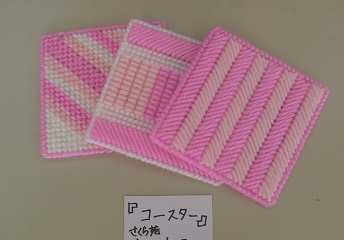 利用者様がリハビリで製作した作品が展示してあり、みんな「私のがある~」と、喜んでみておられました。