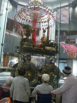 記念撮影のコーナーの「曳き方になってみよう」では、はっぴを着て、記念撮影をしました。